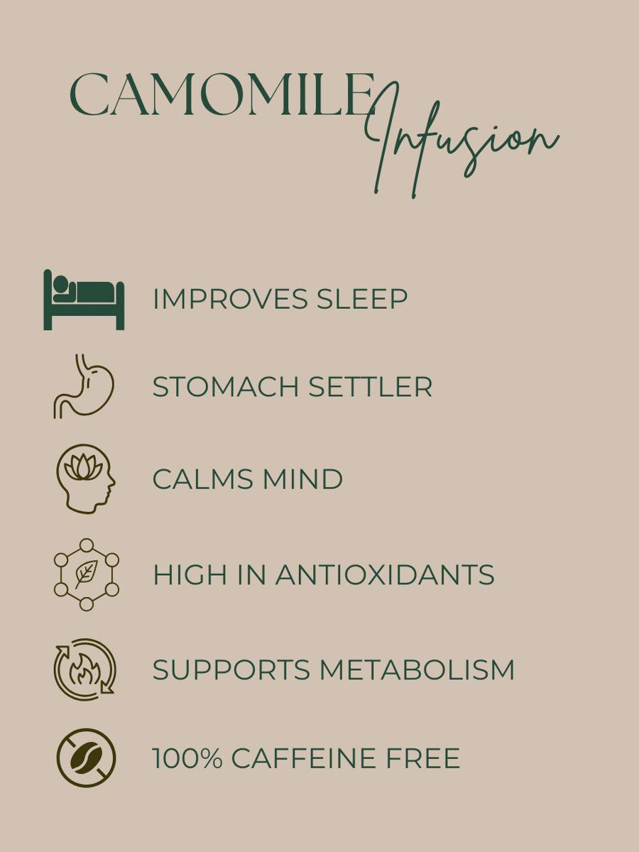 Whether for a bedtime routine or to settle a sore stomach, chamomile herbal infusion is the ultimate soothing brew.