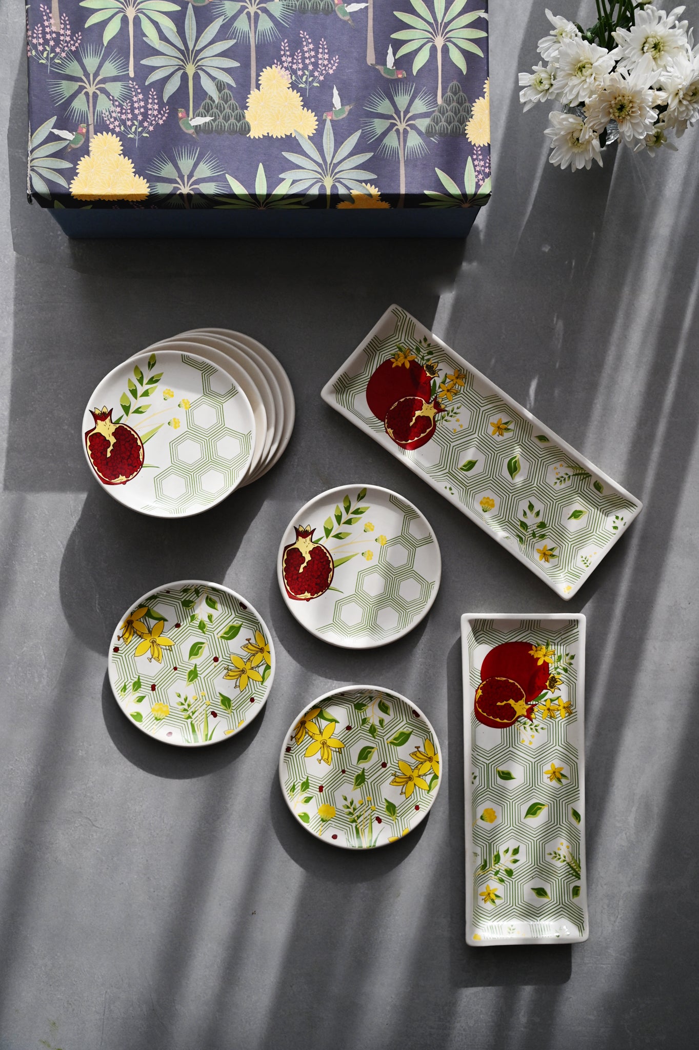 If words aren't enough, the Gift box would show how grateful you are. A set of 10 pcs from our Dadïm collection comes with 8 tapas plates and 2 cookie trays.