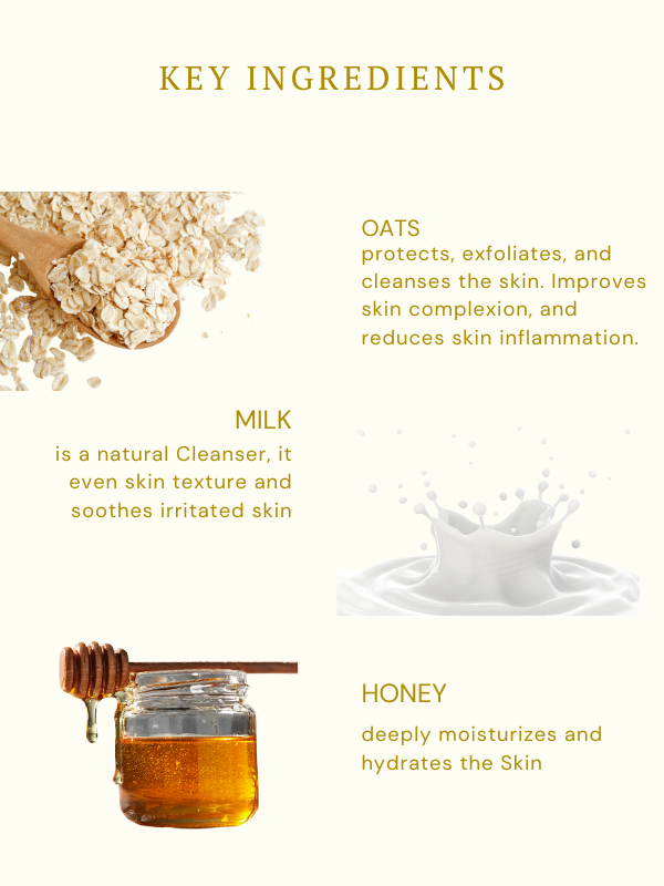 Made with Goat Milk, Mango Butter and Honey, this soap has anti inflammatory and anti microbial properties. Honey acts as a natural humectant locking the moisture in. The Oats help exfoliate the skin. Mango butter provides extra nourishment to the skin and keeps skin irritation at bay.