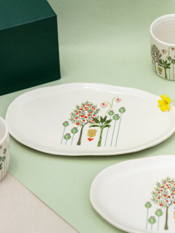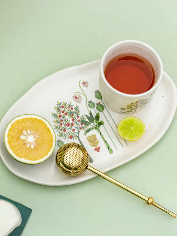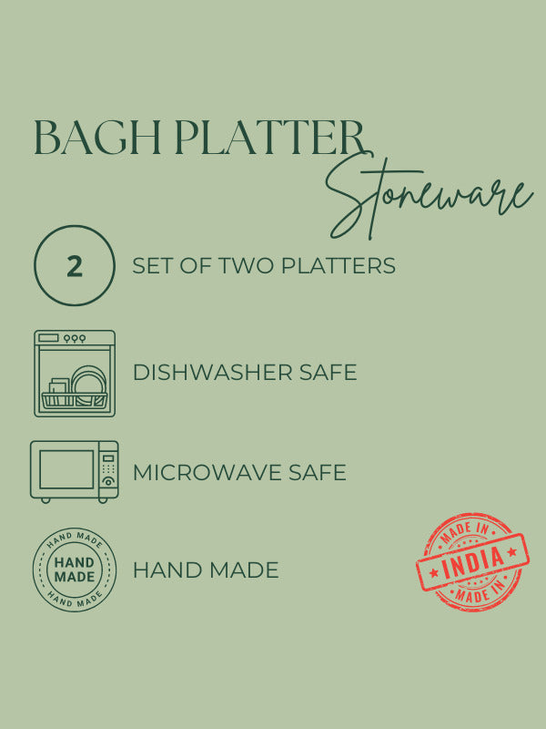 This handcrafted platter is ideal for serving side dishes or individual meals or simply as a beautiful decorative pice for fruit or snacks. Each stoneware piece is painstakingly handcrafted, glazed and embellished by an exceptionally talented group of Indian artisans, who have been producing ceramics for 40 years.