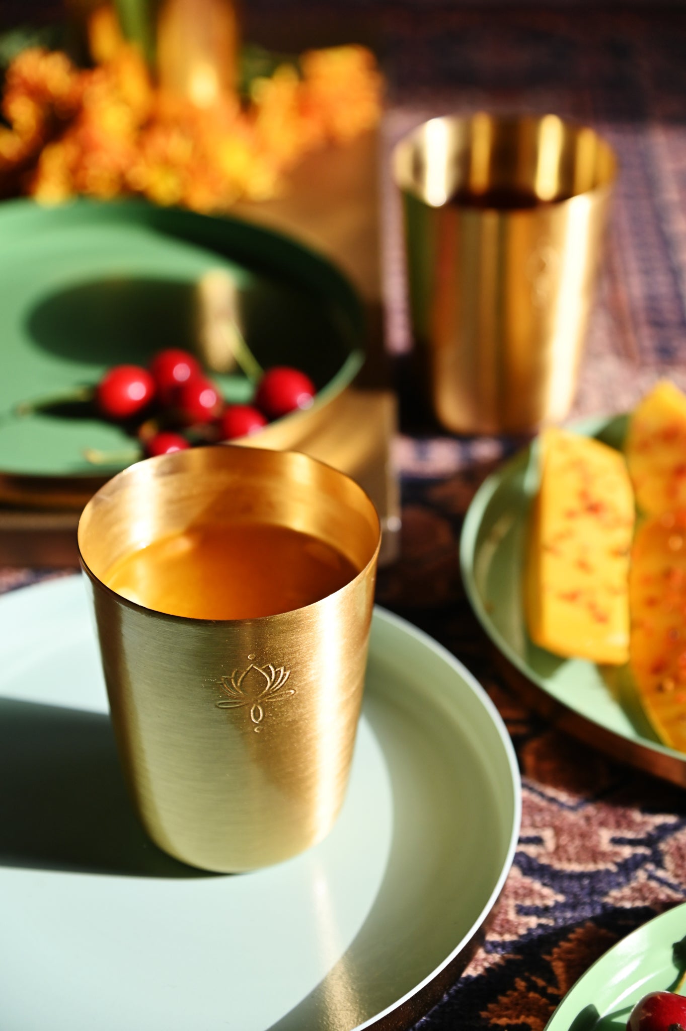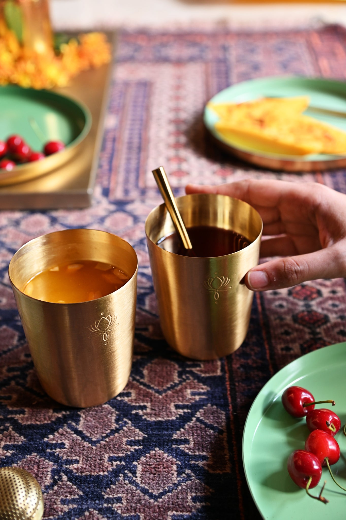 The Brass Tumbler is our take on age old materials. A humble earthen tumbler, originally used for drinking water, is as good for serving cold brews.