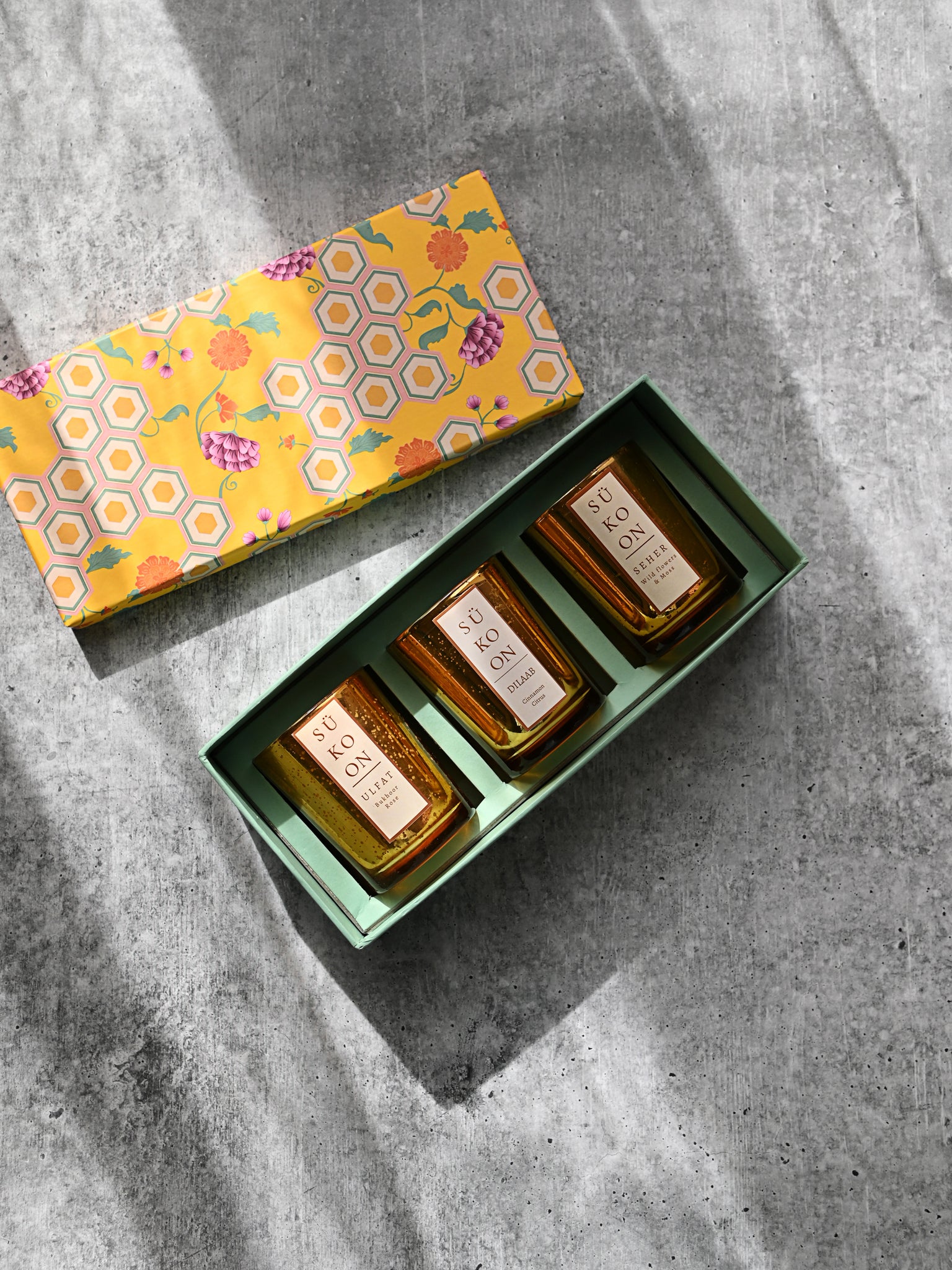 We curated this box to help you elevate your festive gifting. It comes with three candles of your choice.