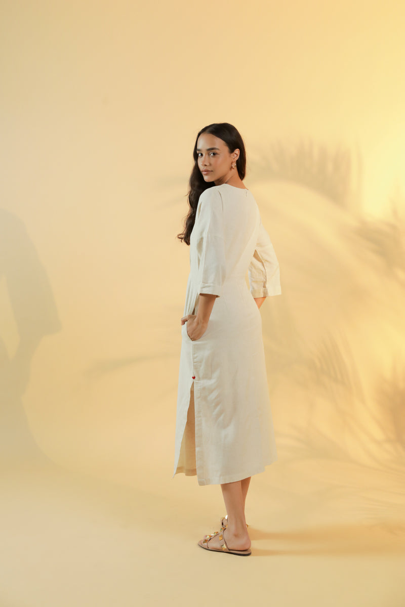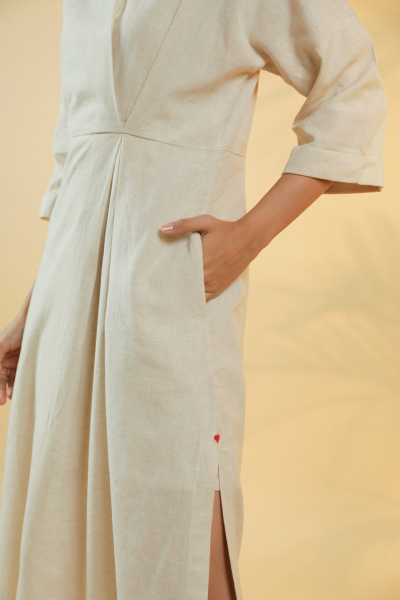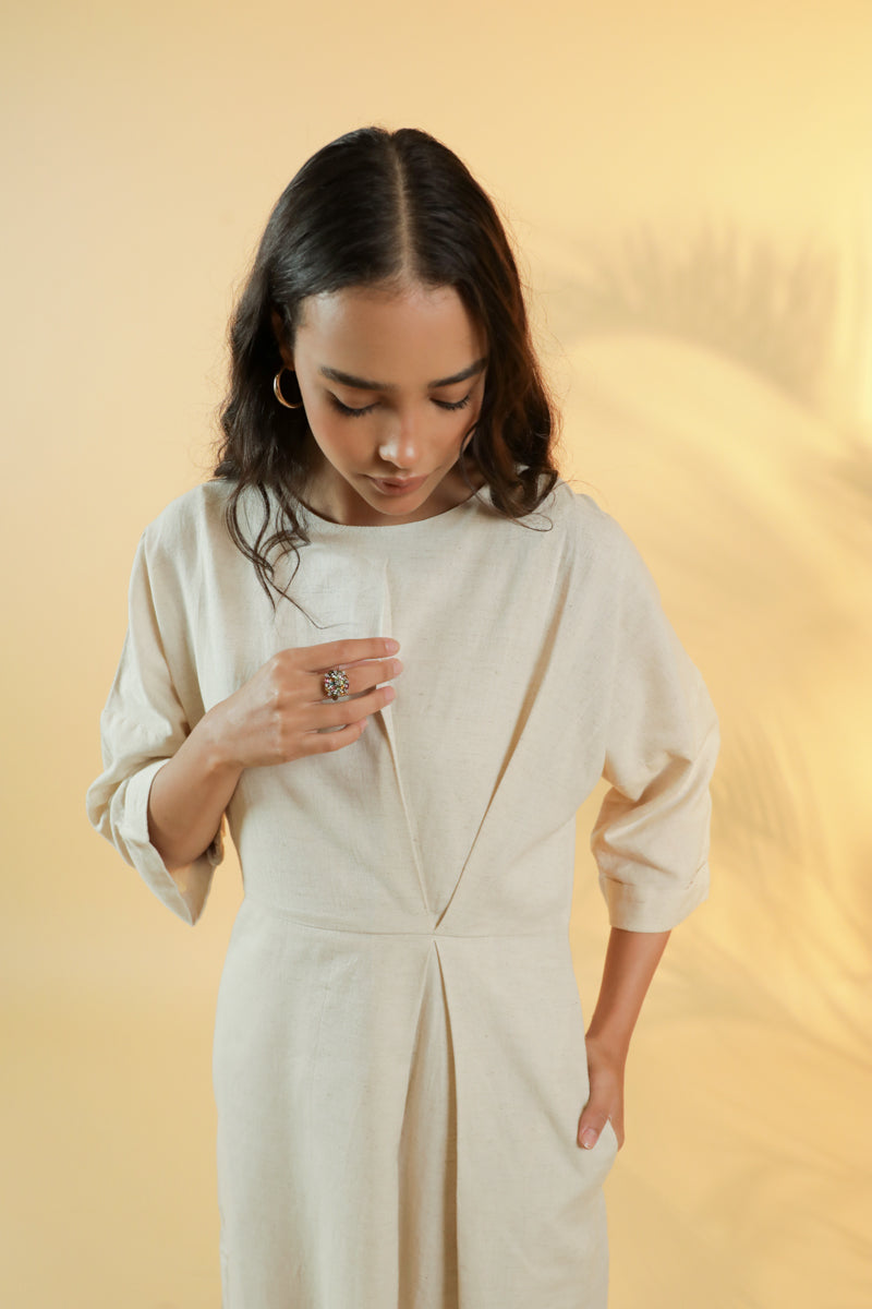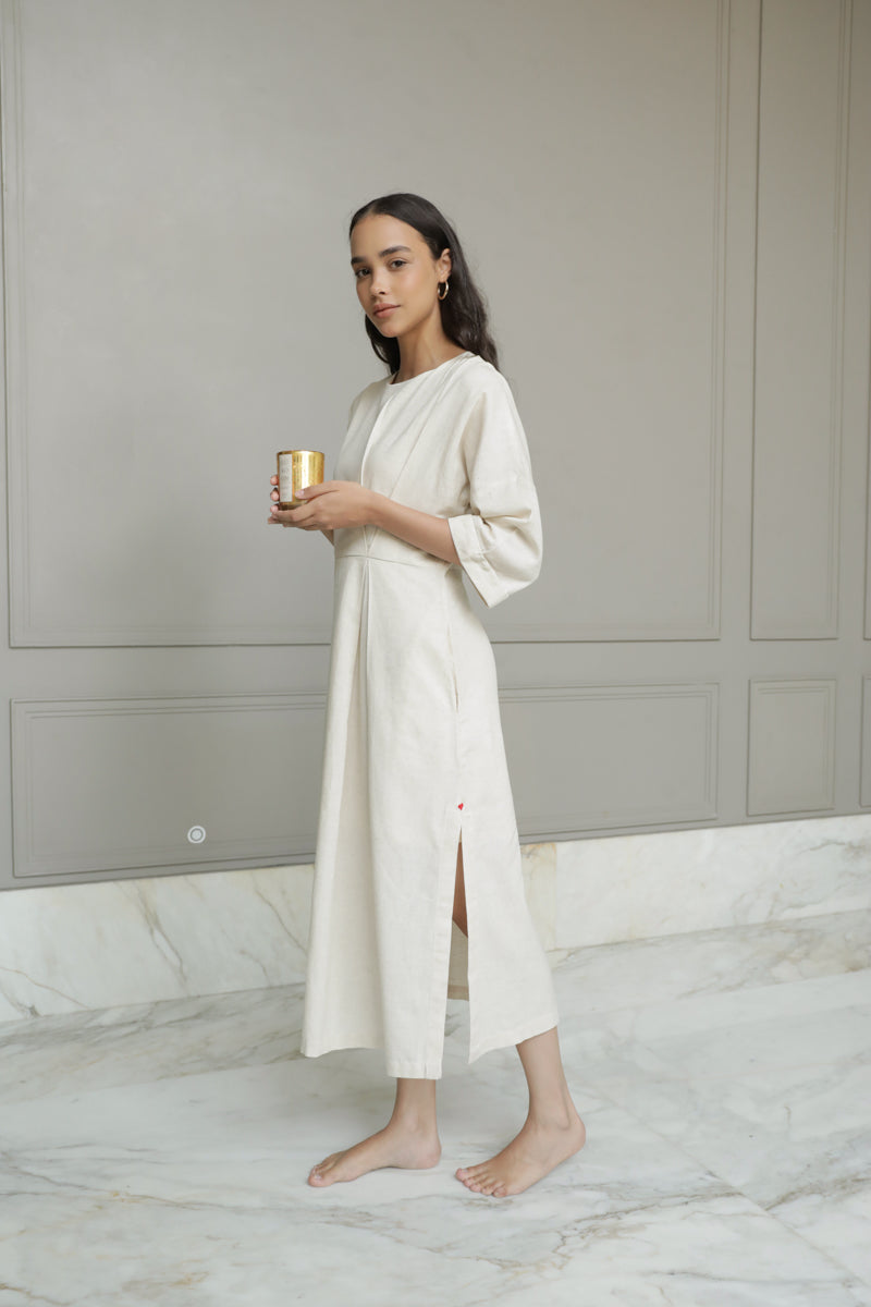 Ulfat Beige Cotton Linen Dress