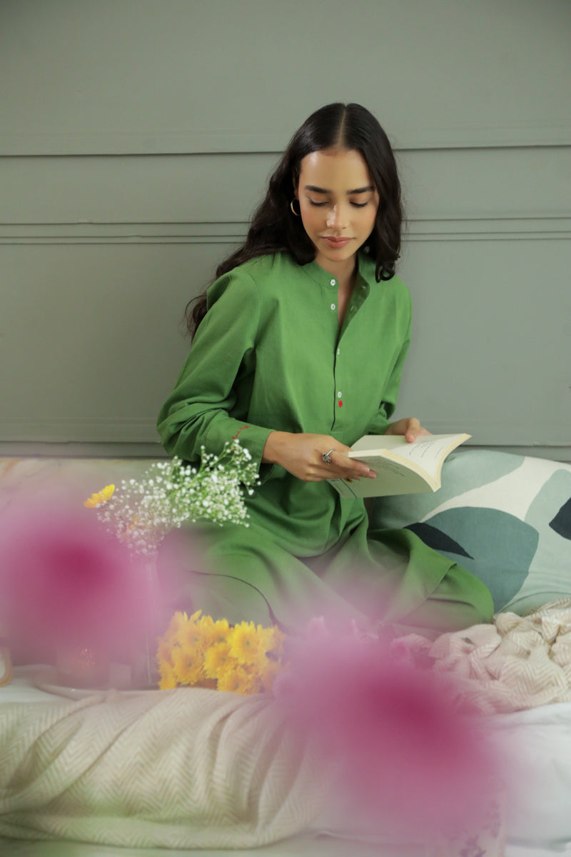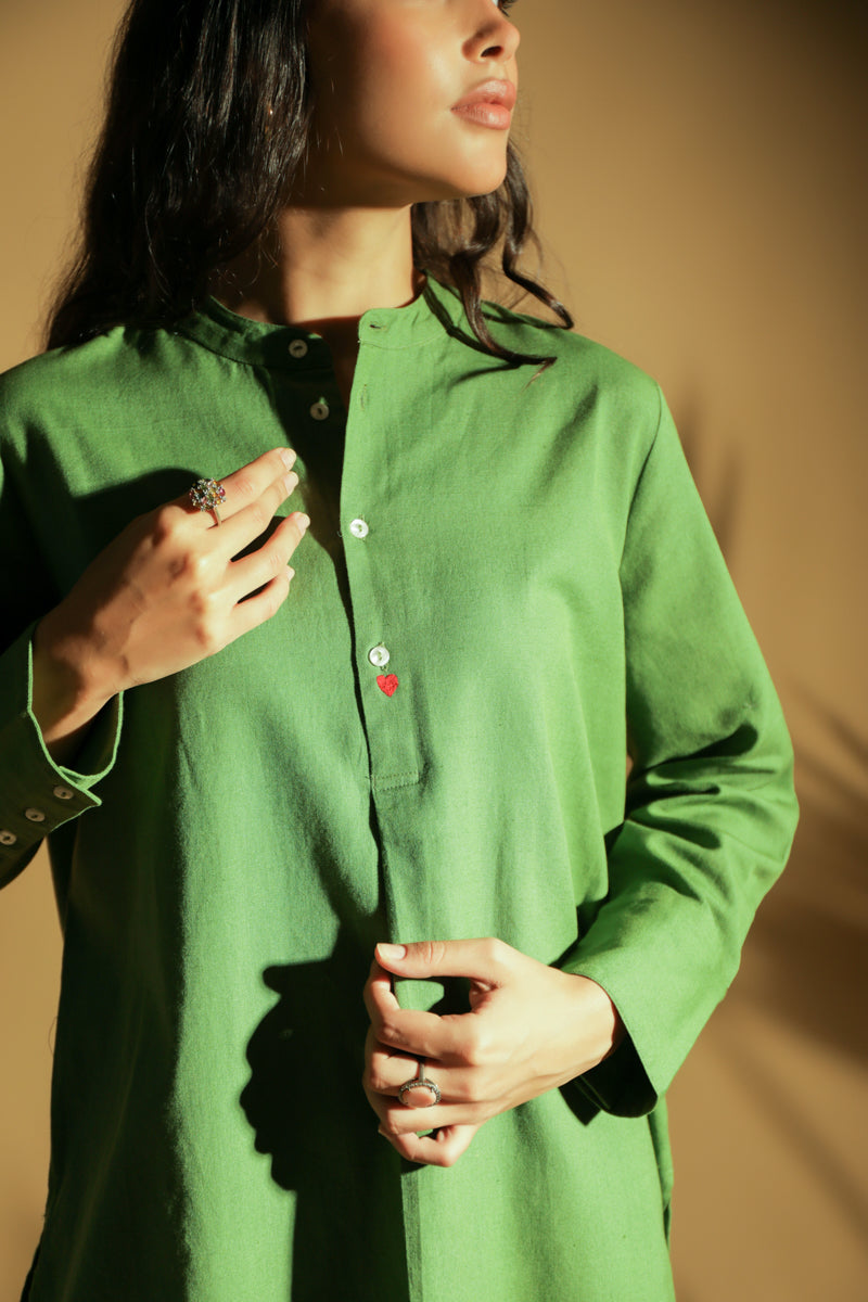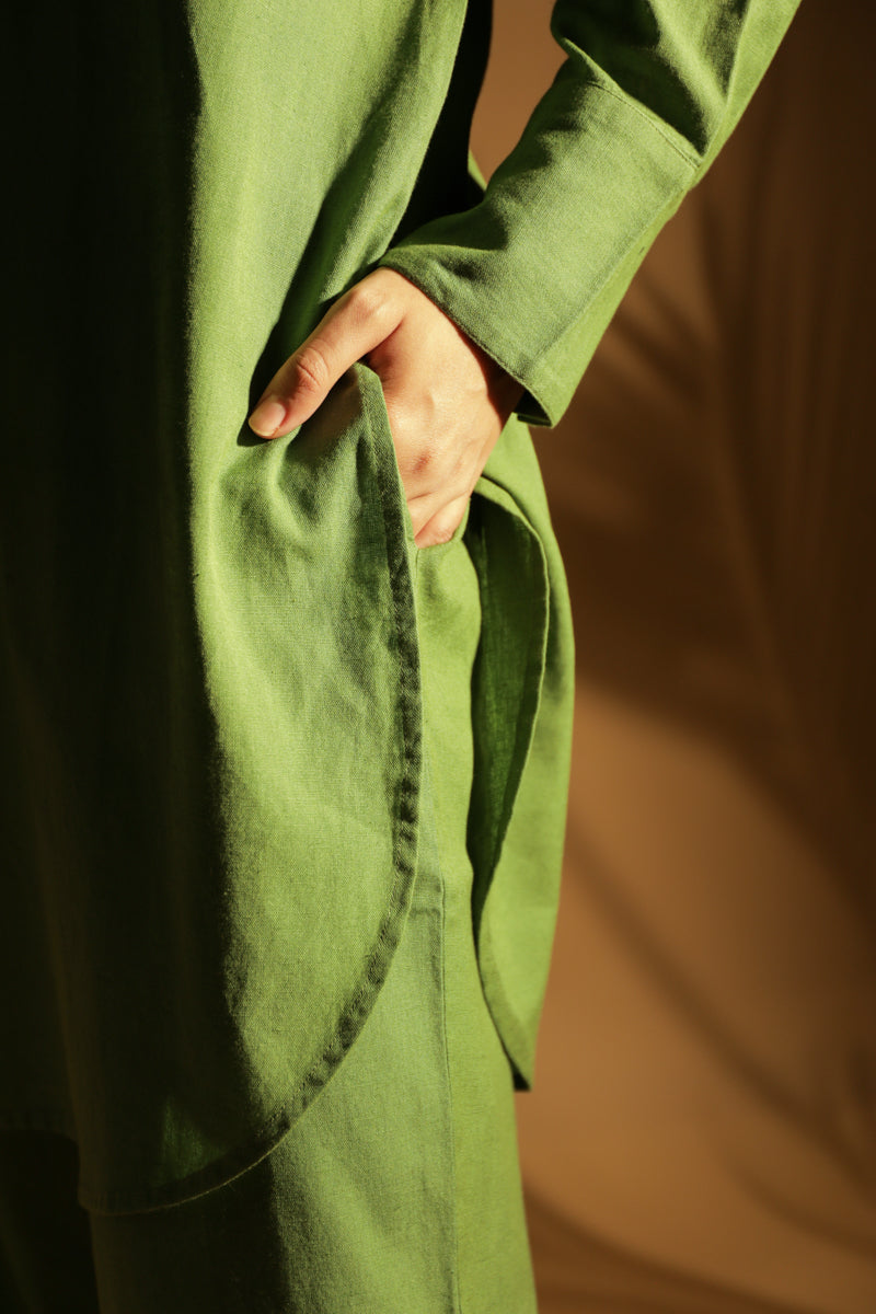 A minimal kurta + pants are a perfect companion for living slowly. It's all about comfort and style. Find a heartfelt message on the cuff.