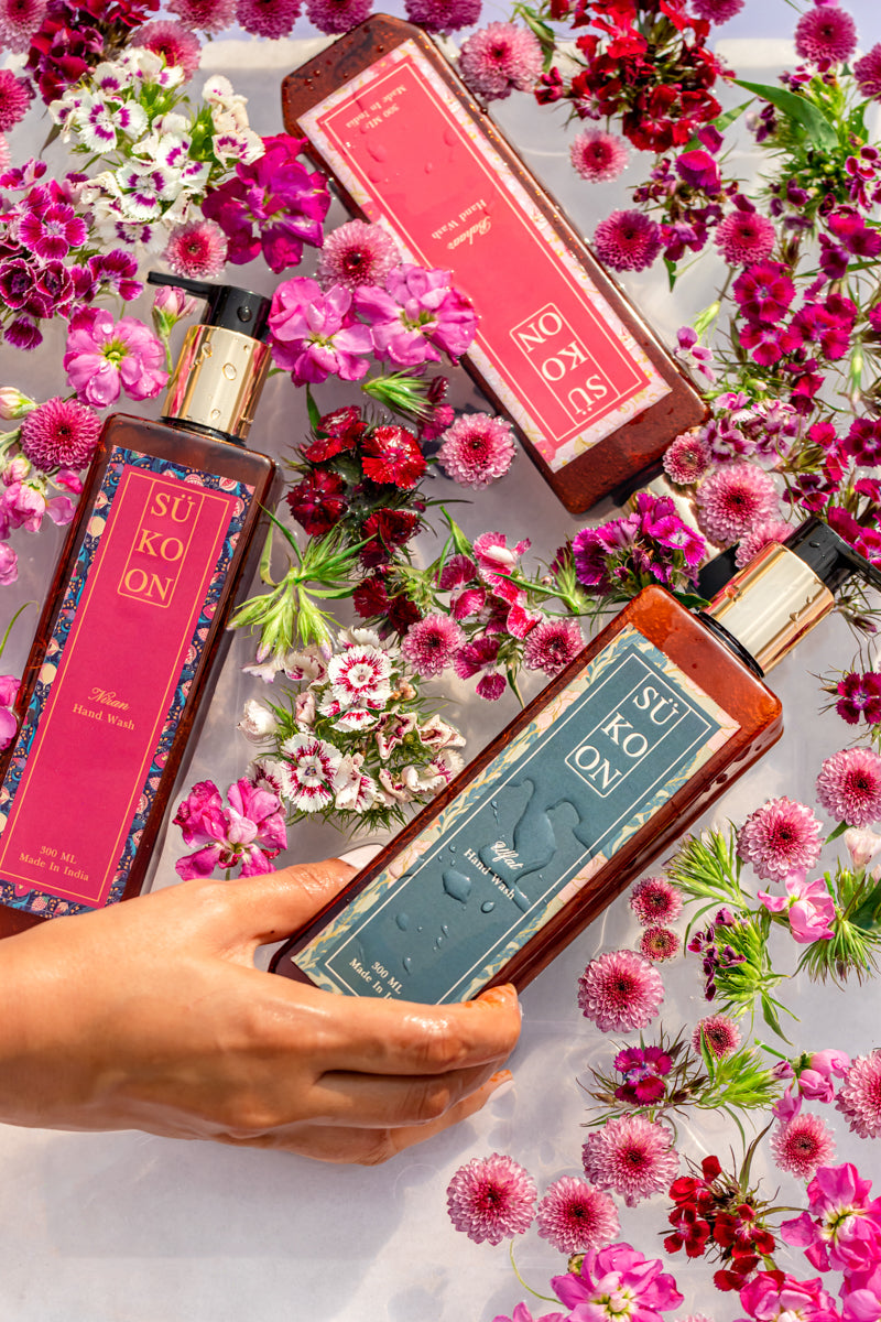 Escape to a rose garden of a different kind with Sükoon’s Ulfat hand wash.