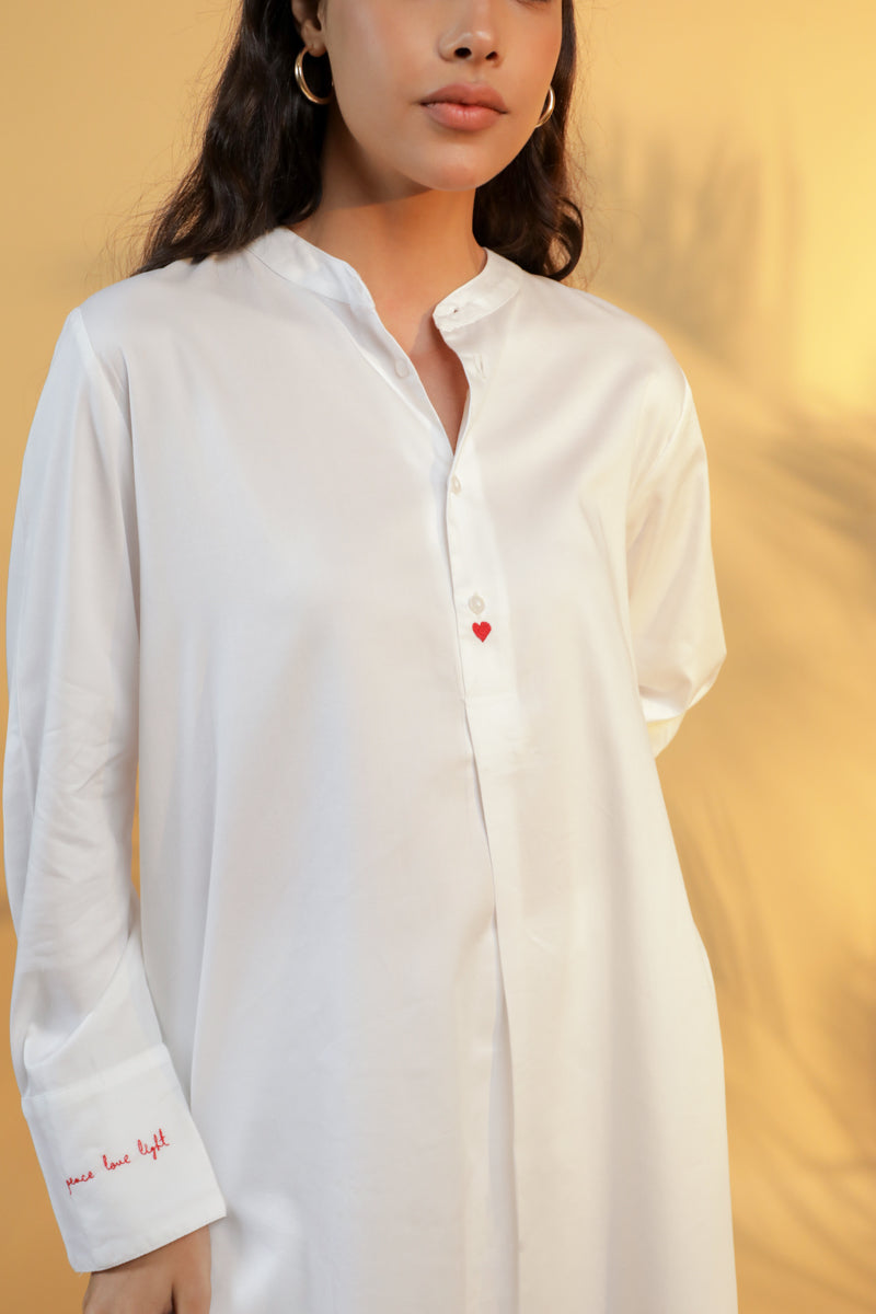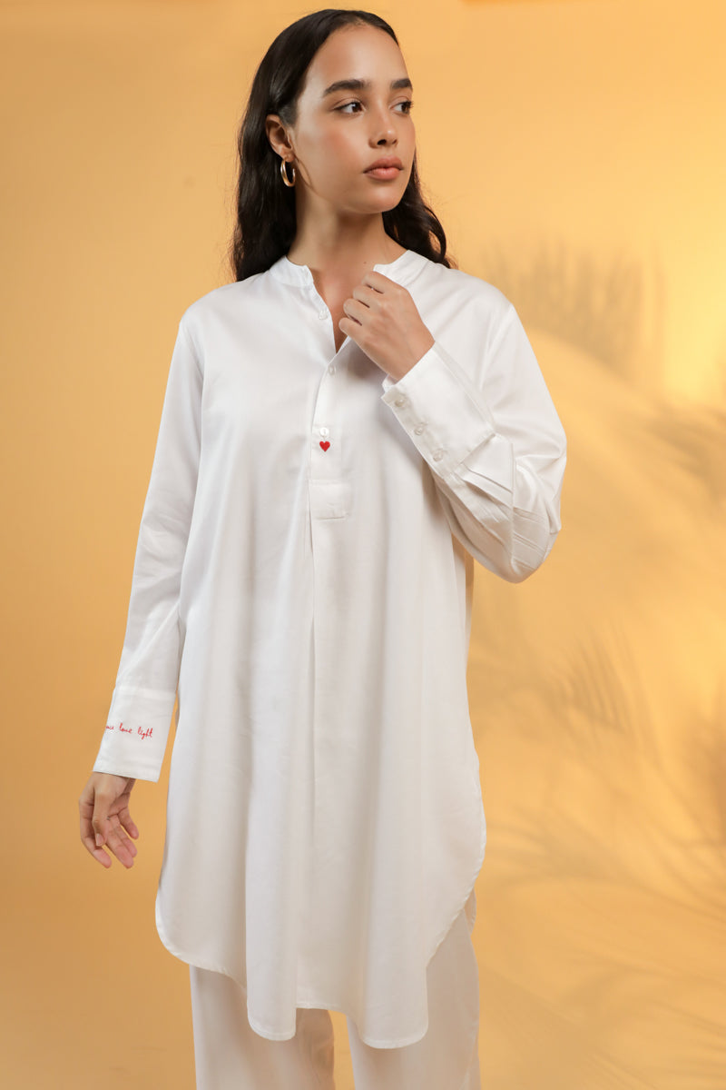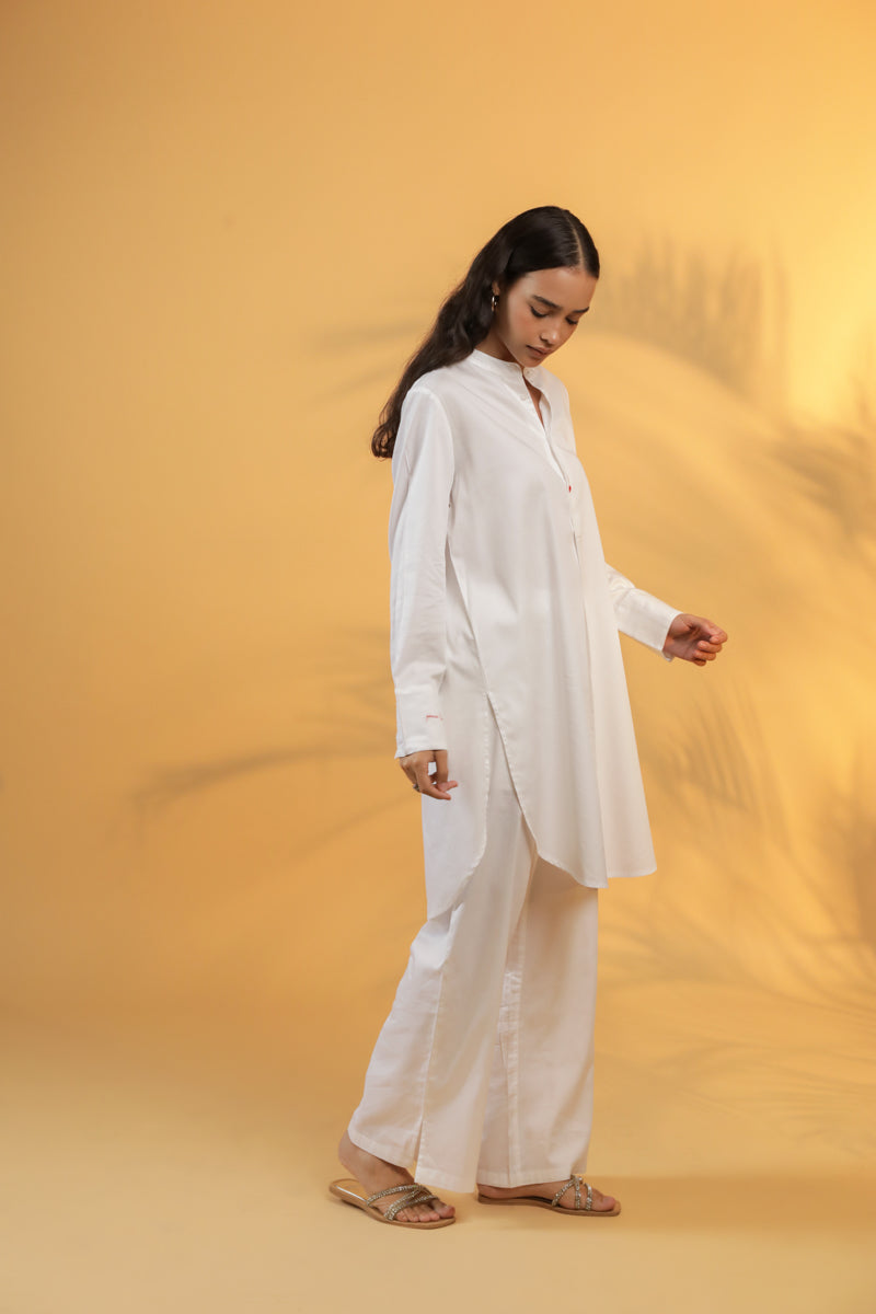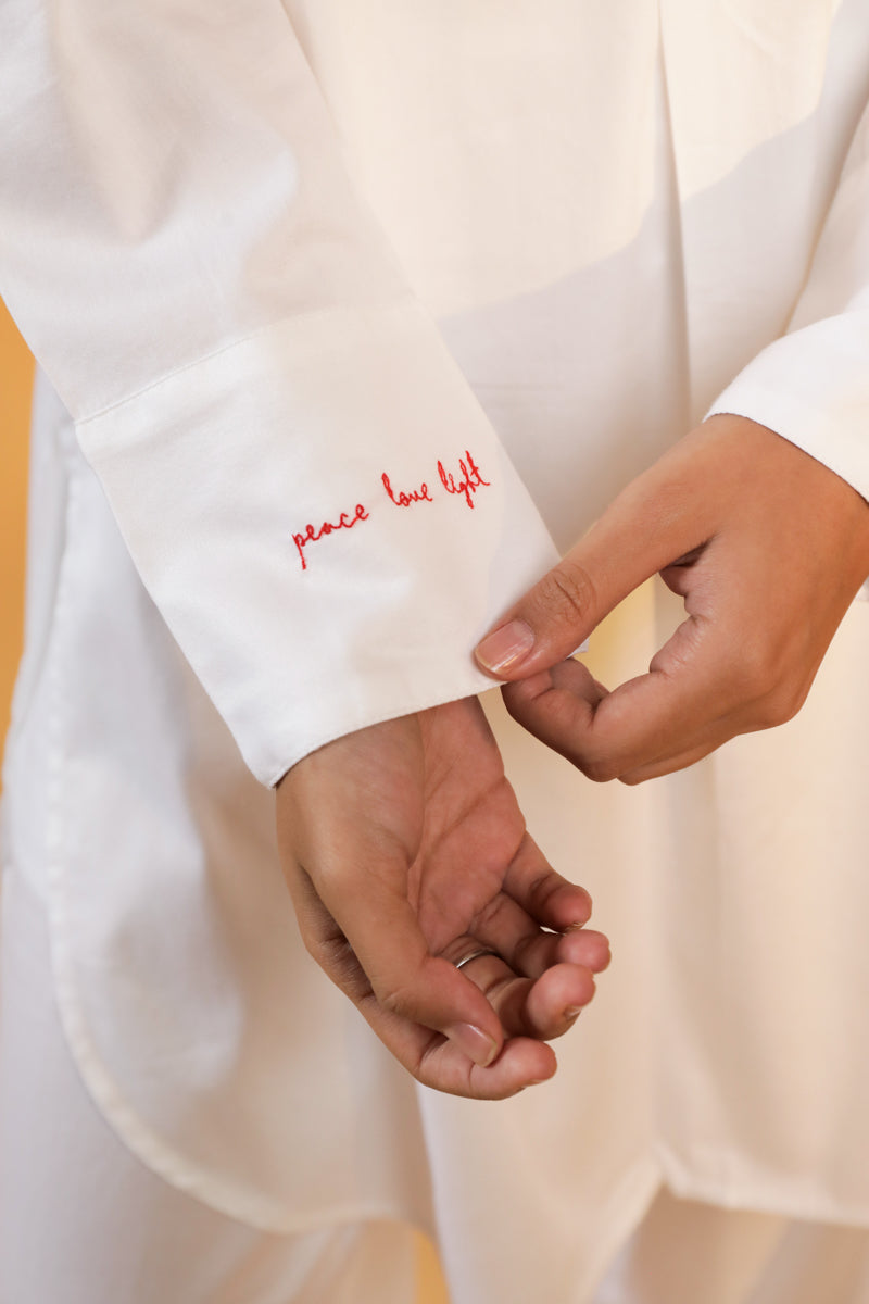 A minimal kurta + pants are a perfect companion for living slowly. It's all about comfort and style. Find a heartfelt message on the cuff.
