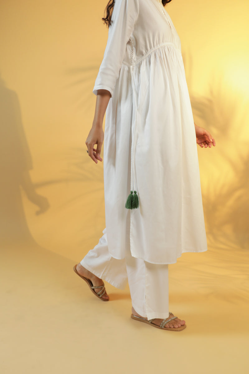 A free-flowing silhouette with green tassel detailing make this one stand out. Don't miss the Ulfat signature heart at the edge.